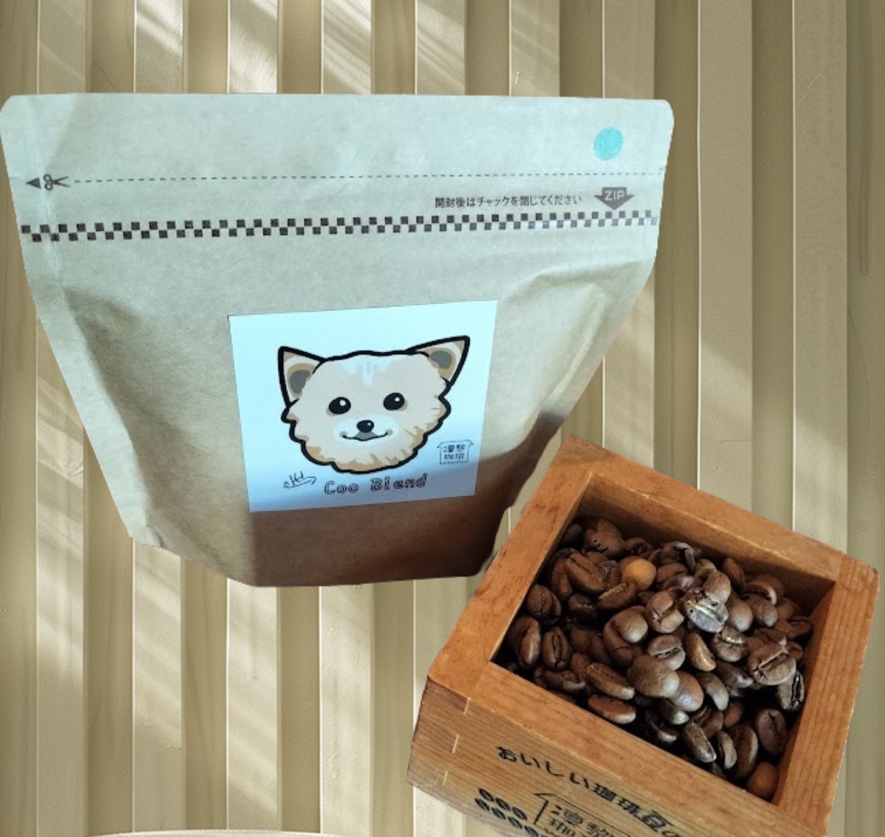 ラベルに描かれているポメラニアンはこちらの豆の色を表しています